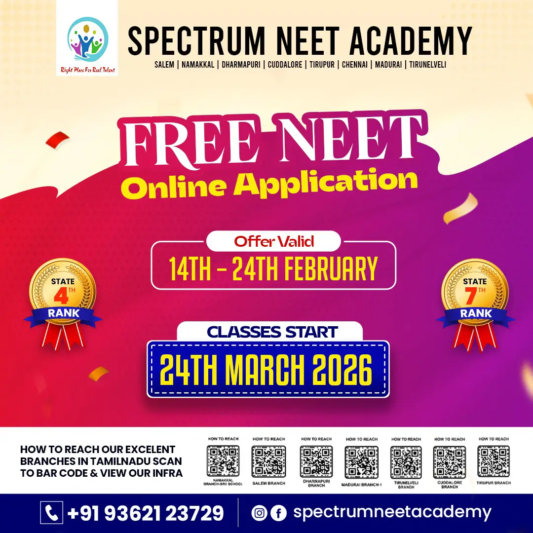 Best NEET Coaching Centres in Dharmapuri: How Spectrum NEET Academy Supports Students with Free NEET Application and Expert Coaching
